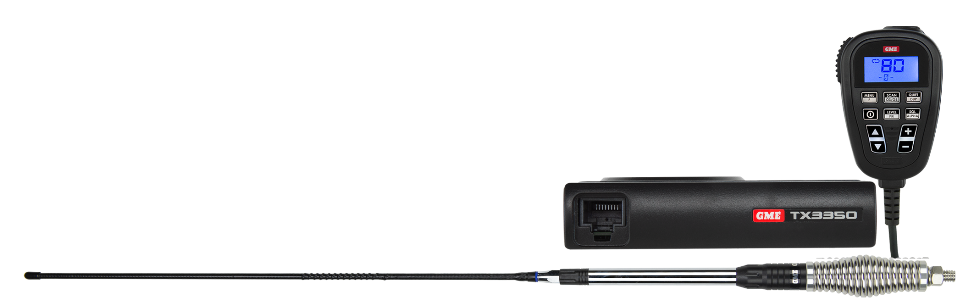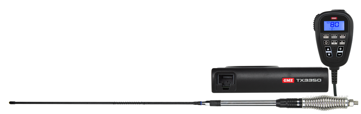 The TX3350 is a feature-packed Super Compact UHF CB radio including a SoundPath™ LCD speaker microphone.